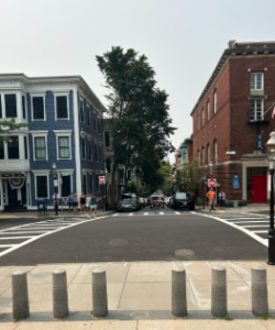 Casey and I continued to take picture after picture as we ran around the park. My parents continued walking around, reading some of the history on the signs and statues surrounding the obelisk which included some pretty legendary figures from the revolution; the most famous of which was a guy named Prescott. He’s the guy who led the US Army during the Battle of Bunker Hill. Once I had finished taking this whole gallery my parents decided that they wanted some coffee before we started the journey up to Canada and gathered everyone else; we began walking down the street through Charlestown, where I continued to take pictures of the traditional-looking streets as we headed to a local Starbucks. There, my grandparents and Casey were able to take some time to catch their breath and use their phones (that one just applied to Casey, who had spent most of his downtime trying to beat Theory of Everything 2 on Geometry Dash. At the time I’m writing this, he just beat Deadlocked for the first time. He’s getting pretty good.)