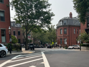 The entire town surrounding the obelisk (Charlestown) had one of the most unique vibes to it that I’d ever seen in a town; it was the most traditional thing I’d seen in the trip so far. Every single road in the area was surrounded by red brick buildings with an architecture that looked like it could’ve been from the Puritan Era. The cars felt to me almost like they didn’t even really belong there, like instead of modern roads there should just be a bunch of dirt paths and people riding on horse wagons to get around. It was even more interesting, in my opinion, than our quick visit to Harvard just the day before. And historic Boston is a patriotic American city; I quickly realized that the American part of Patriotic Boston was very much alive and well. Just about everywhere you went in Charlestown, American flags were hanging from homes and street lamps and flowers with the colors red, white, and blue. There was a lot of pride in identity in Charlestown; not only in American identity, in fact, but also in New Englander identity. I saw the New Englander Flag (which looks really good, I encourage you to look it up and set it as your wallpaper) hanging from the roofs of several of the houses in Charlestown.