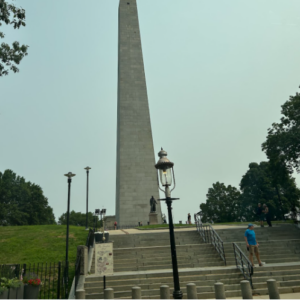 Many famous battles of the American Revolution took place in the general Boston area; most notably, there were the Battles of Lexington and Concord in 1775 (considered the first battles of the war) and the Battle of Bunker Hill, which was also fought in 1775. The Battle of Bunker Hill was fought in a part of the city called Charlestown. Today, a large monument (often referred to as an obelisk) stands dedicated to the battle. It’s sort of like a Boston equivalent of the Washington Monument in DC. And while it’s nowhere near as epic and grand as the one you’ll find in DC, the historical context of the battle intrigued me, and I thought it was worth checking out. My parents were initially a bit skeptical of visiting since we’d already left at eleven o’clock and Montreal was a six-hour drive away. Their attitudes changed when I pointed out that the Bunker Hill Obelisk wasn’t too out of the way from the route we planned to take, and they agreed to take a stop in Charlestown to get a quick look at the monument.