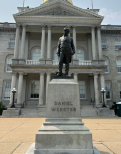 That was our next stop; to get to Canada, we’d have to drive through the state capitals of both Vermont and New Hampshire, and I wasn’t gonna let the opportunity to explore the two states go to waste completely. The state capital buildings for both cities were exactly on the way to Montreal, which meant we’d visit two state capital buildings today. The New Hampshire state capital had a pretty large and grand building; the golden dome was absolutely magnificent, and the architecture was kind of reminiscent of something old in Europe; for all I knew, the picture of this place could’ve just been some fancy government building on the continent of Europe. The only things on the outside of the building that would’ve actually given you a hint that this place was American were the American flag and the statue of Daniel Webster at the front of the building.