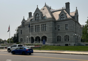 But the next real stop of the trip, as it turned out, would be Concord, the state capital of New Hampshire. When we pulled in, we realized it was a pretty small city; it doesn’t even have 100,000 people, it’s not the skyscraper insanity that was Boston or (soon to be) Montreal. But it did have some significant structures; as soon as we pulled off the highway, I could already see the start of a golden dome just a few miles away.