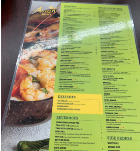 We decided to get lunch while we were in Concord, and my parents ended up picking an Asian, Thai place while they were in Concord (read the Thailand Trip on my blog if you haven’t, Phuket and Bangkok!) The place we chose is called Asian Thai Kitchen; I ended up ordering this dish. Here’s the rest of the menu if you want to try.